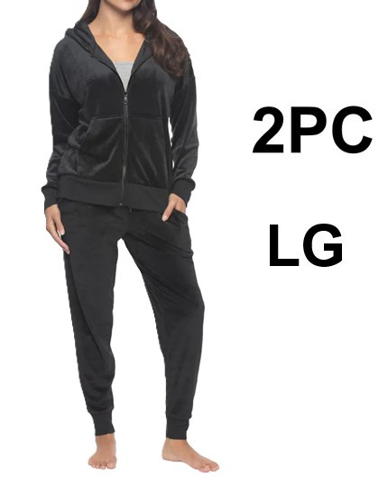 2PC VELOUR black bow HOODIE & JOGGER LOUNGE SET - large - BLACK (MODEL: 1913883)