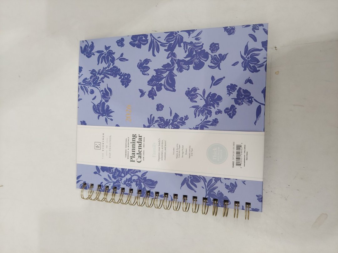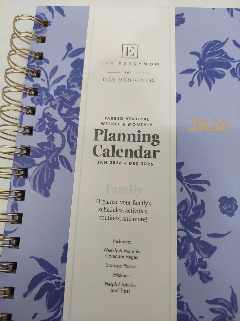 The Everymom 8"x10" WIREBOUND 2026 Weekly/Monthly Planning Calendar - Fleurette Blue/purple (MODEL: 154602)