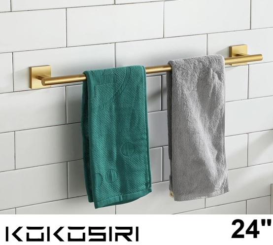 KOKOSIRI Bathroom Towel Bar Bath Towel Holders for Toilet Kitchen Cabinet Wall Mount - 24" - BRUSHED GOLD (MODEL: ‎‎B4005BG-L24)