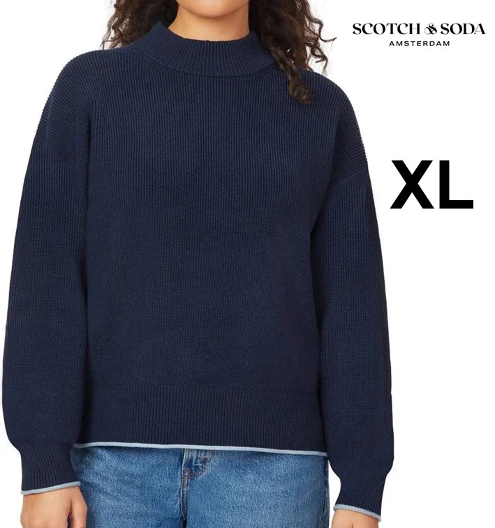 women's scotch and soda amsterdam ribbed mock neck sweater - extra large - NAVY BLUE - (model: 1917513)