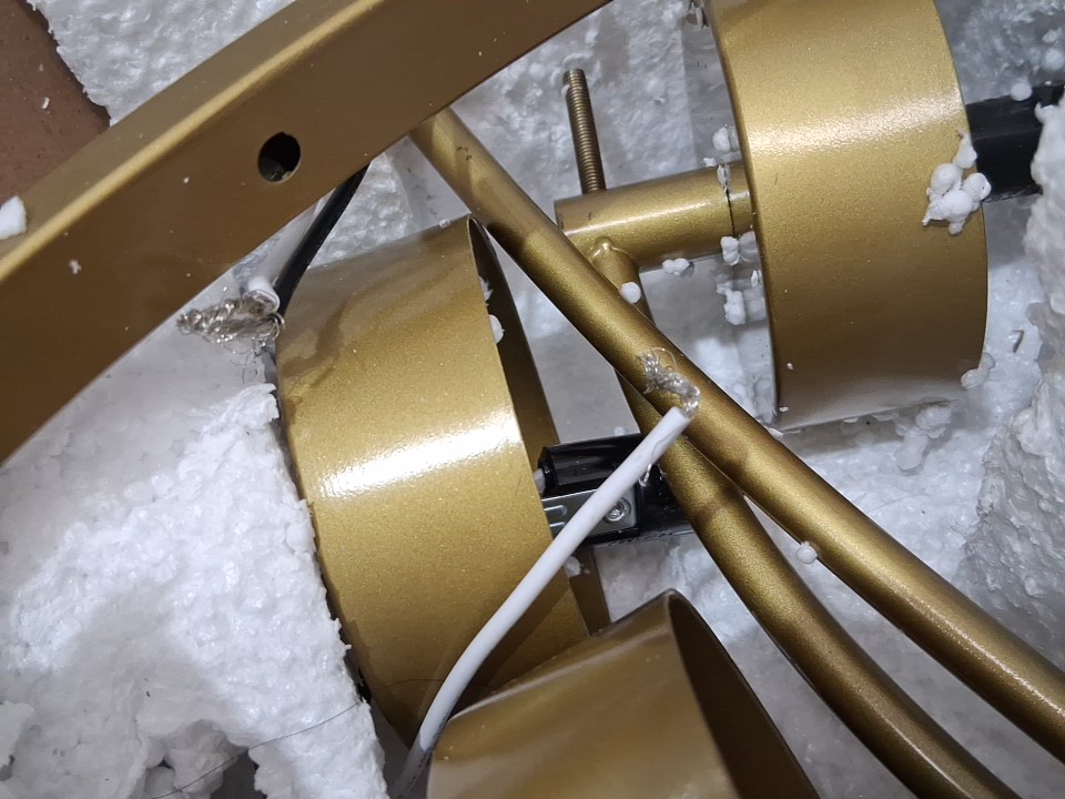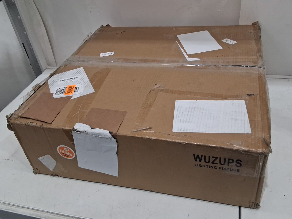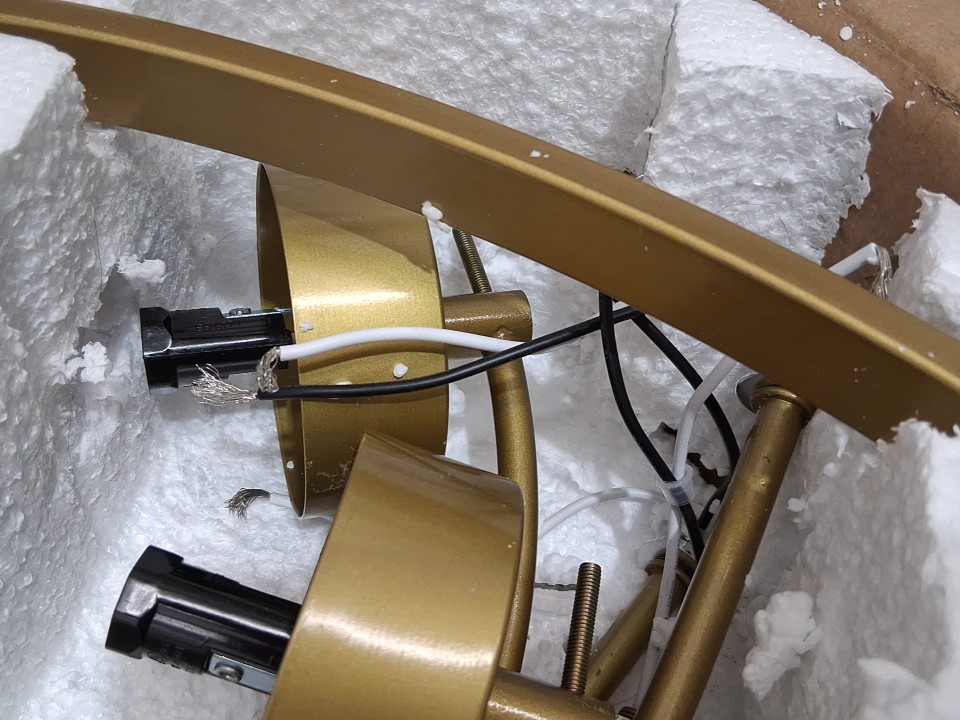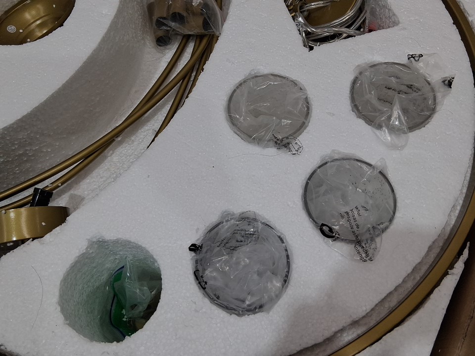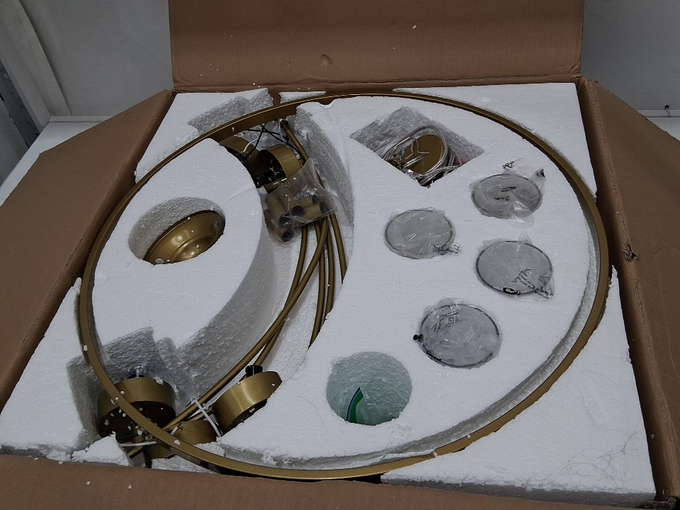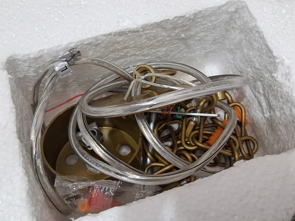 Item has minor scratches/markings on parts of the fixture, light wear on the wire ends from previous gentle use, see photos. Item arrived with one of the glass light covers shattered which has been disposed of however there may be small glass chips remaining in the packaging, see photos.
