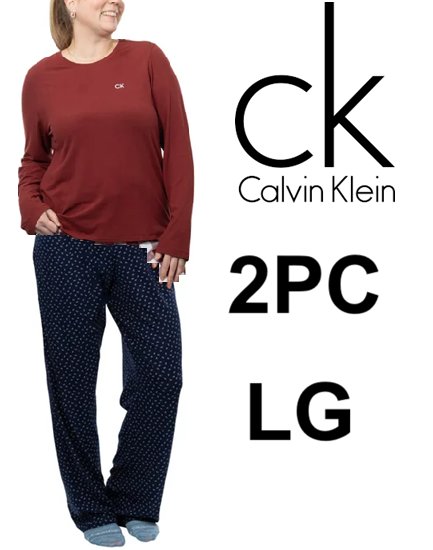 2pc Calvin Klein Women's Soft Slumber Long Sleeve Pajama Set - large - red/BLUE (style: 1929993)