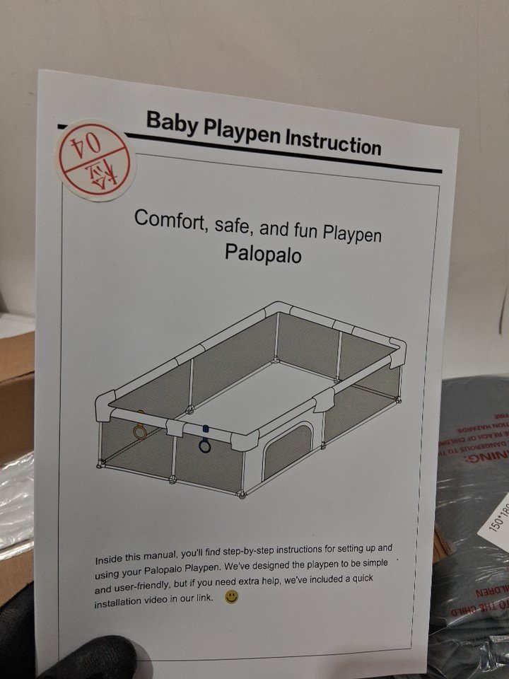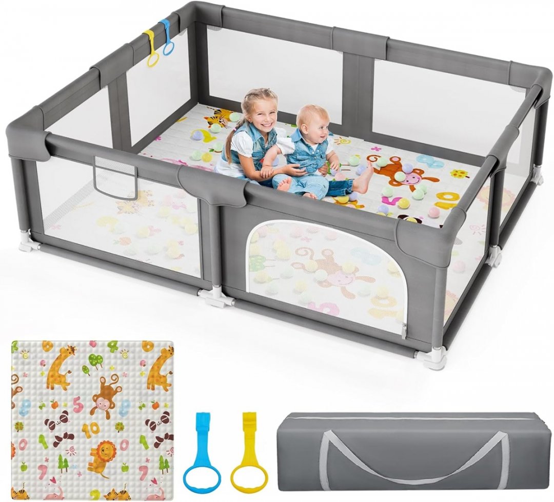 Palopalo Baby Playpen Activity Center With Gate Baby Fence - 71" X 59" - GREY/MULTICOLOR
