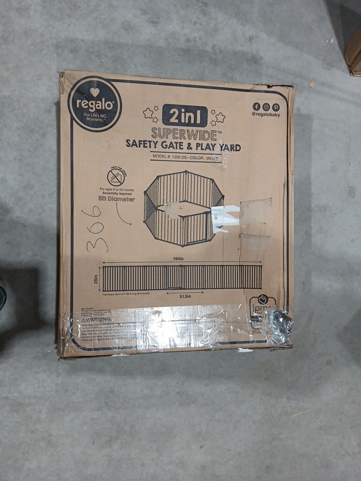 REGALO 2-IN-1 8-PANEL SUPER WIDE METAL SAFETY GATE/PLAY YARD - FITS OPENINGS UP TO 194" - 28" HIGH - WHITE (MODEL: 1350DS)