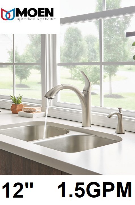moen camerist single handle kitchen faucet with pull out spout - 12" - 1.5gpm - silver (model: 7545c)
