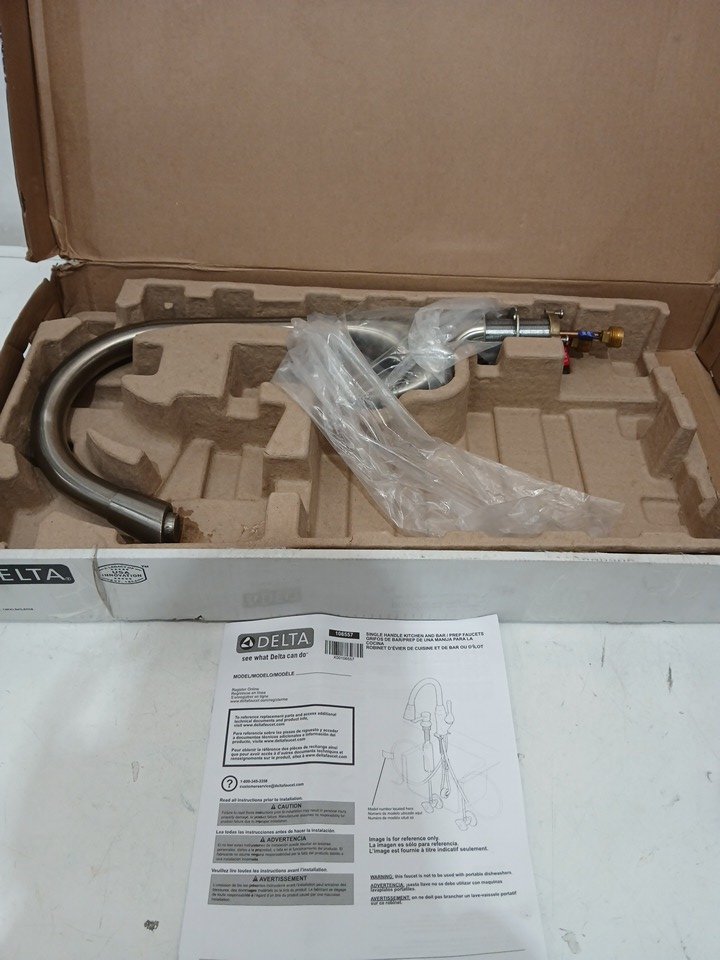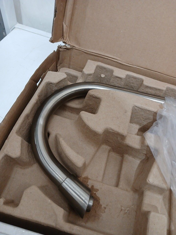Please note all the accessories in the box are missing, and there is a presence of water spots on the faucet indicating prior use/installation. This package only includes the faucet.