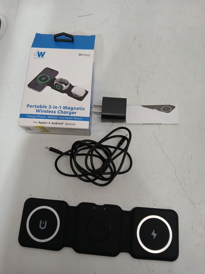 Just Wireless 3-in-1 Portable Foldable Magnetic Wireless Charger for Apple Devices, Apple Watch, and Android Devices - 20W - Black