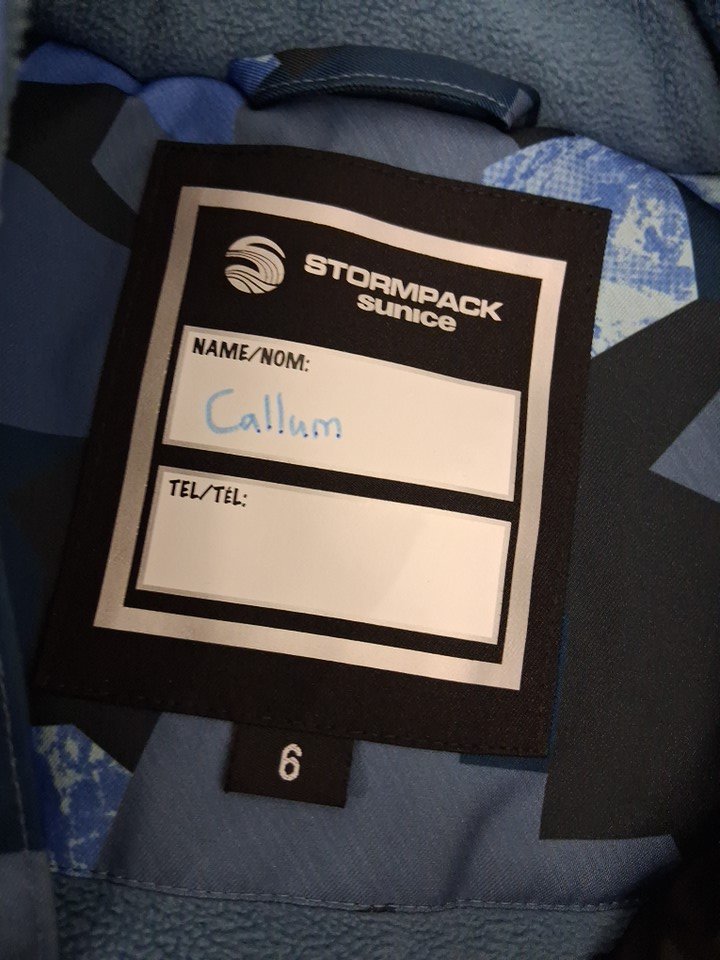 Jacket has some dirt discoloration on bottom hem, and there is a name written inside