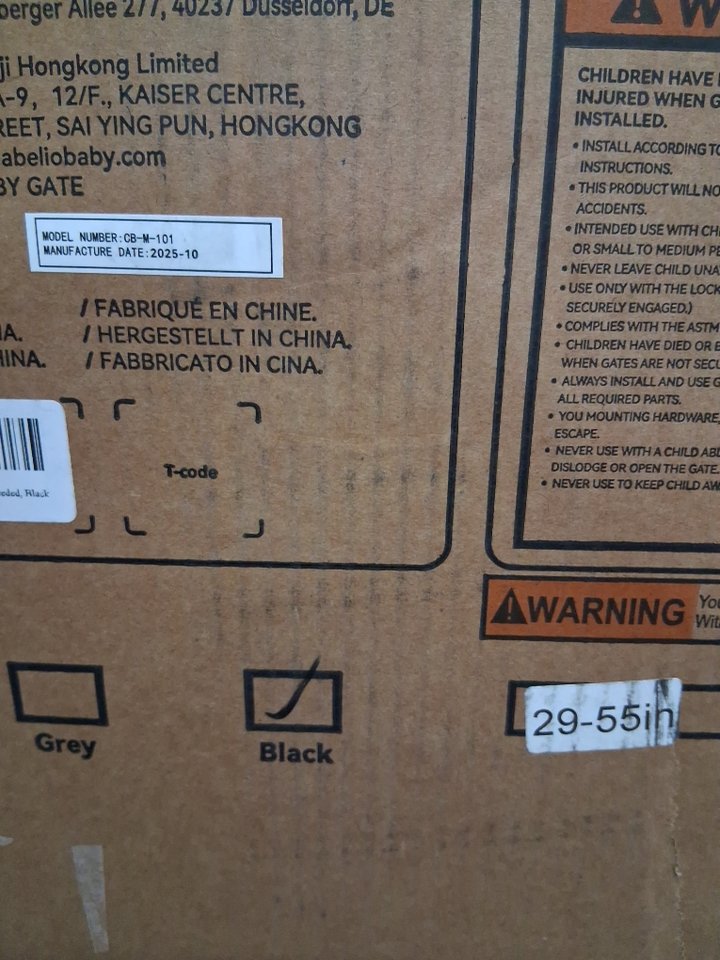 babelio extra tall pressure mounted metal child safety gate - 29" - 55" x 30" - black (model: cb-m-101)