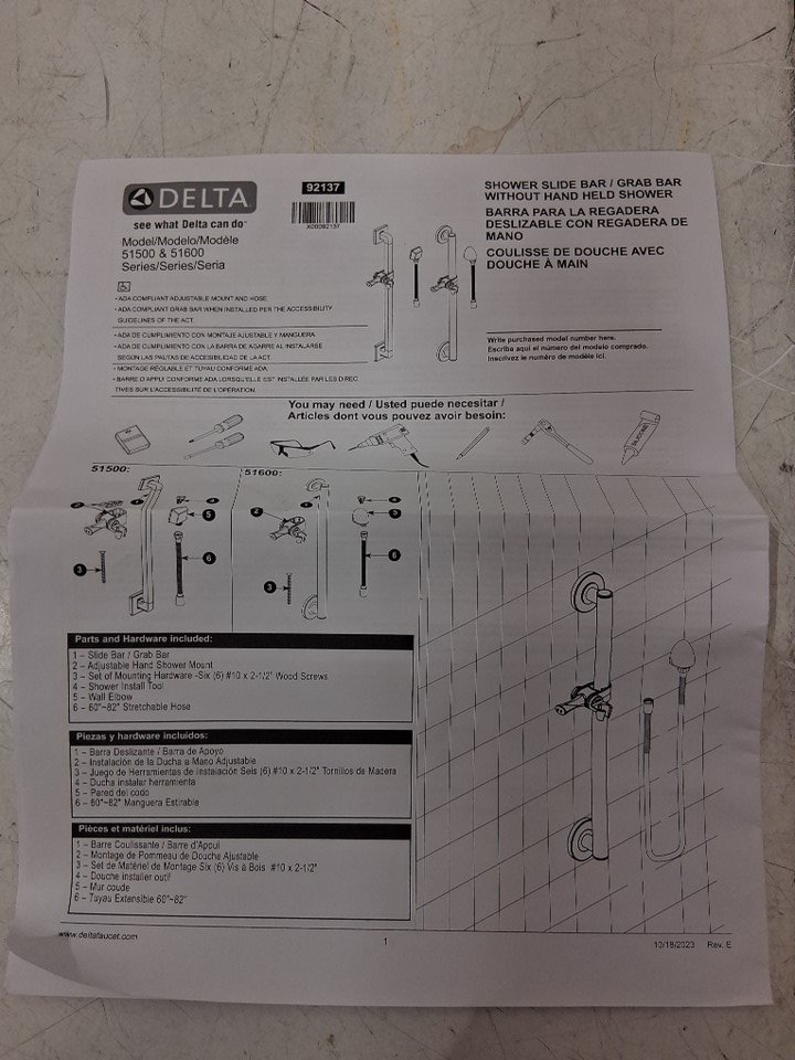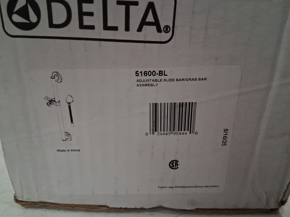 DELTA Faucet Adjustable Slide/Grab Bar Assembly with Elbow - 24" - MATTE BLACK (model: 51600-BL)