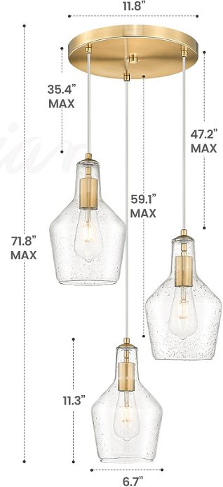 Emliviar 3-Light Cluster Pendant Light Hanging Pendant Lights with Seeded Glass - e26 -cLEAR/GOLD (MODEL: DYE286G2-3)