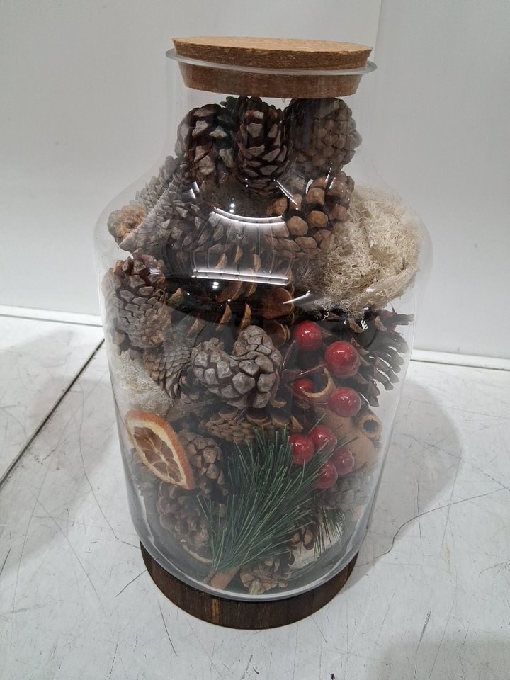 Holiday Potpourri GLASS Vase - 12" - CINNAMON SCENTED (MODEL: 1931075)