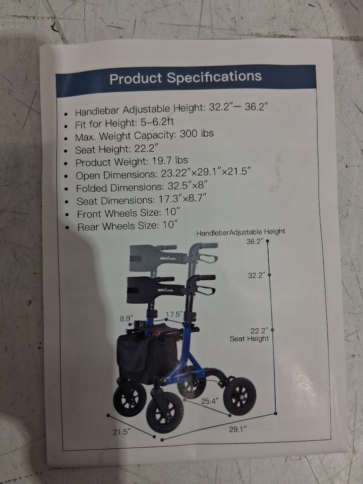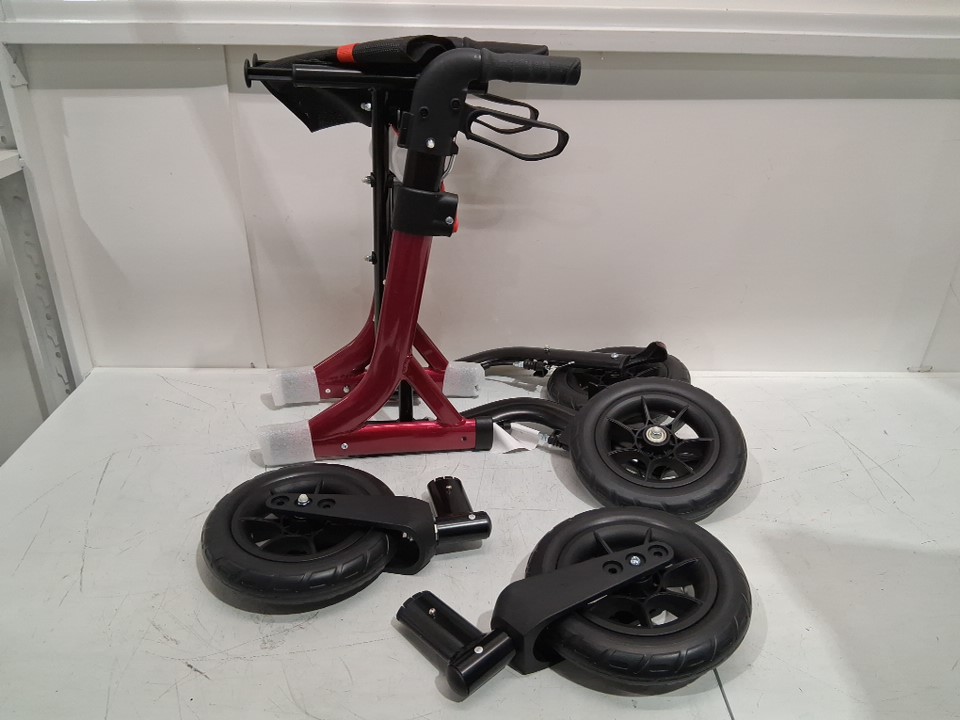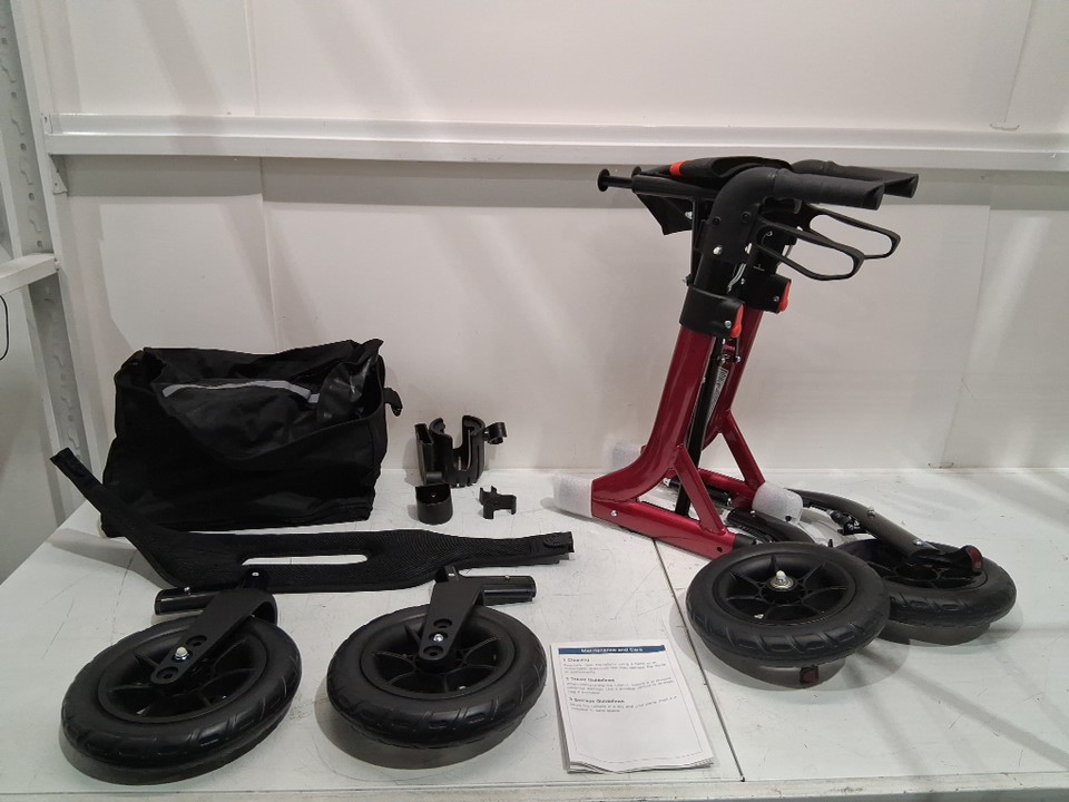 MAXWALK Rollator Walker with Seat, Tall Walkers for Seniors 12" Big Rubber Wheels All Terrain Rollator Walker with Backrest, Built-in Cable, Foldable and Dual Adjustable Height - for people 5.3ft-7ft - red (model:mw2403)