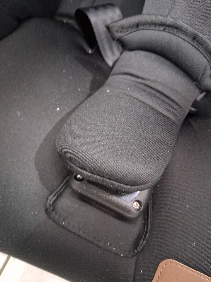 Item has marks and scuffs from previous use. Also, the cover needs to be put back on the seat. (See photos)