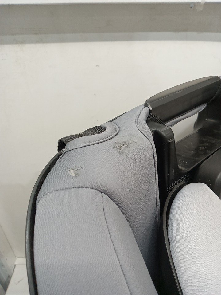 the chair has some hair in the cup holders, and a few small holes on the top. please see photos