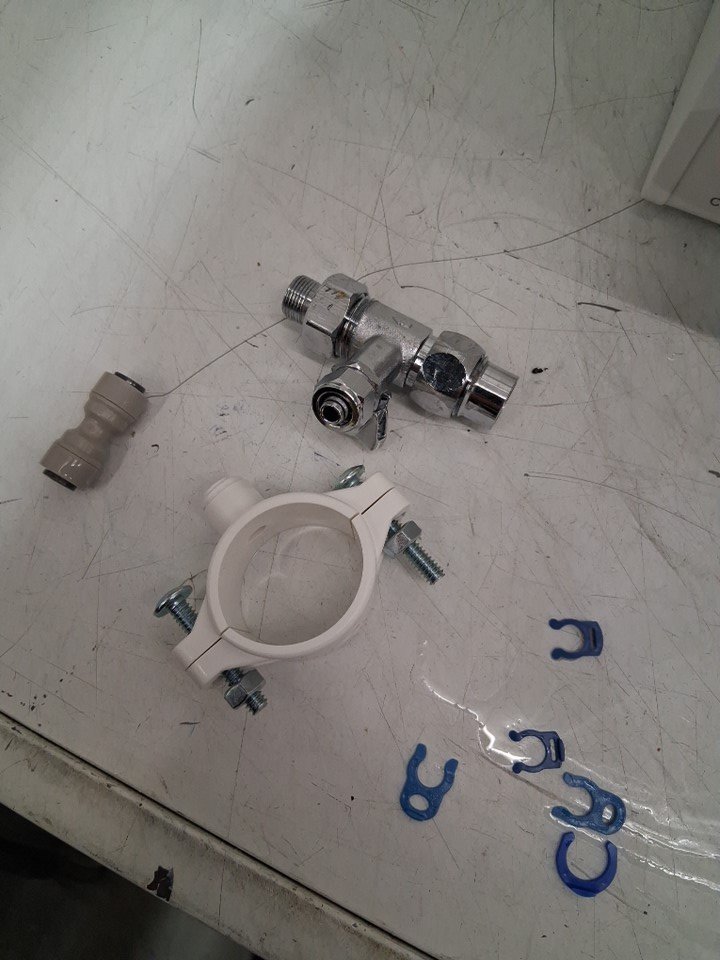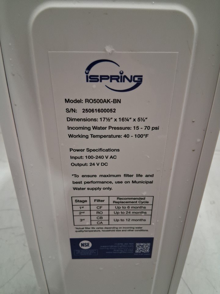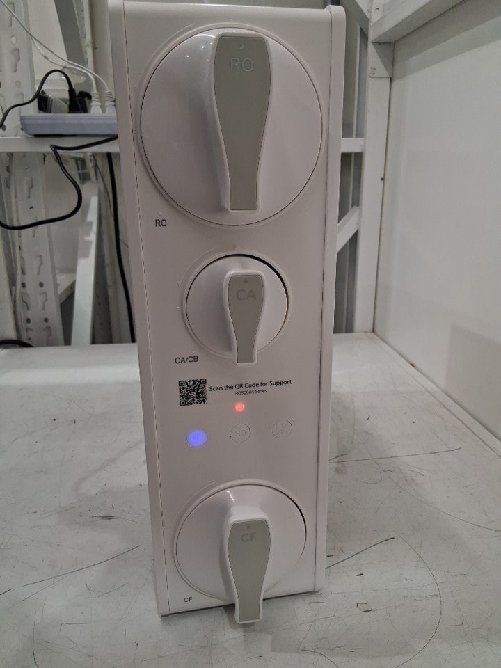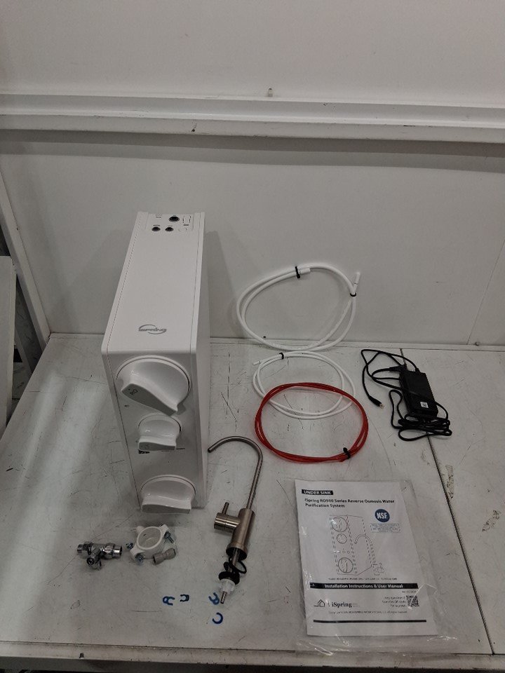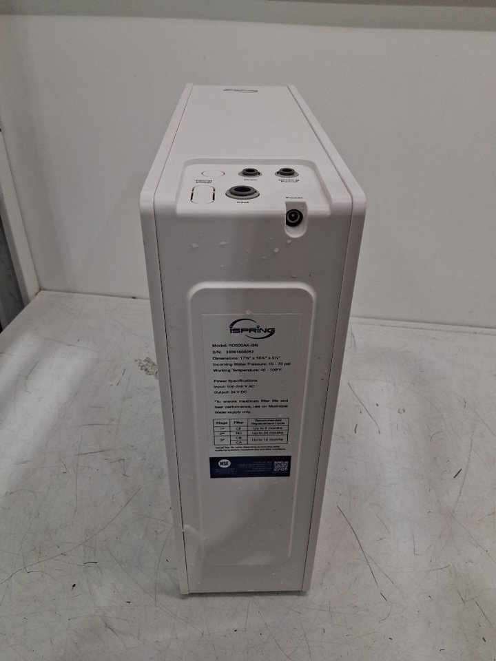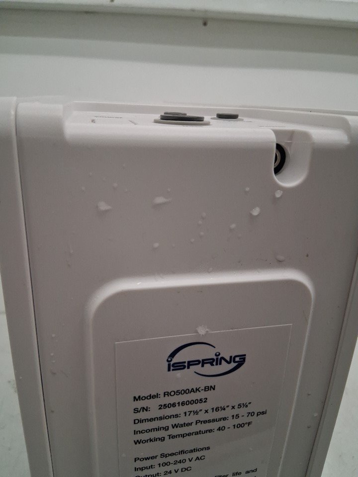 The osmosis system has some water droplets on it due to previous use. The osmosis system was tested for basic power.