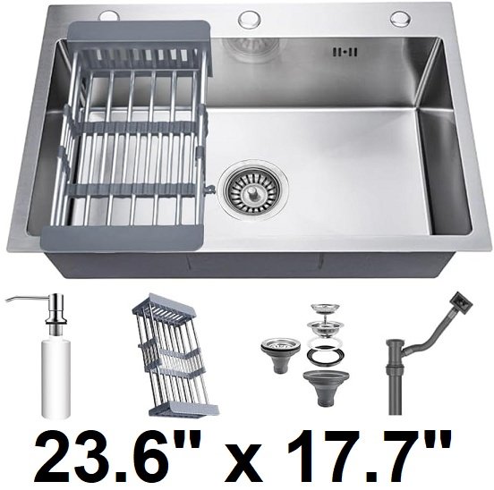 RCCRNNPP stainless steel drop-in kitchen sink set with 3 holes - 23.6" x 17.7" - silver