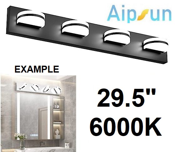 AIPSUN DIMMABLE 4-LIGHT BATHROOM VANITY LIGHT FIXTURE - 29.5" x 4.3" - 6000K, BLACK (MODEL: 5892-4T)