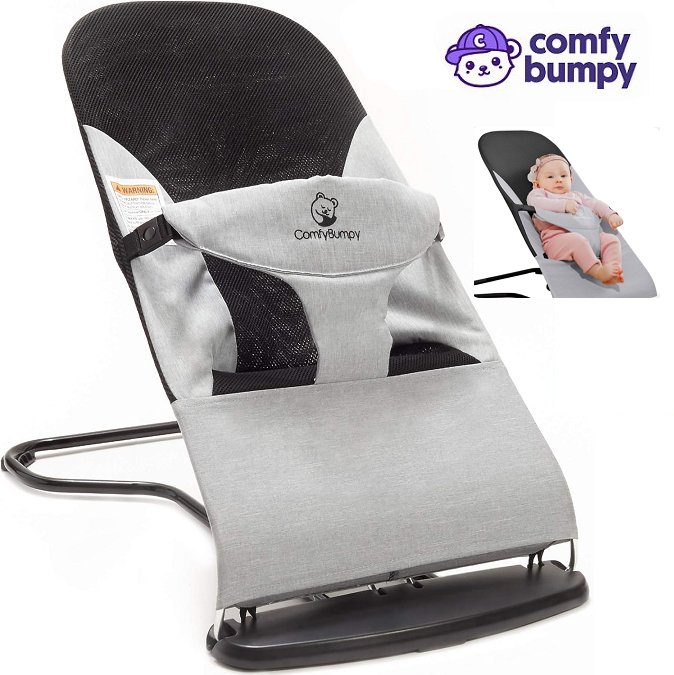 ComfyBumpy Ergonomic Baby Bouncer Seat - Black/Grey (model: ‎Bouncer-01)