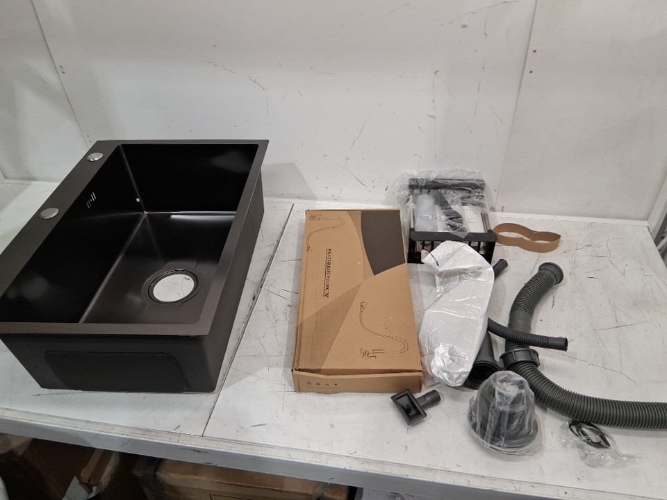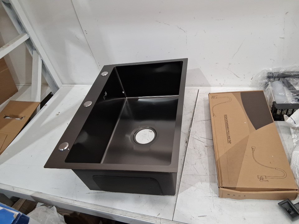 rovogo top mount single bowl kitchen/bathroom sink with 3 holes - 20" x 16" x 9" - 304 stainless steel - black/grey