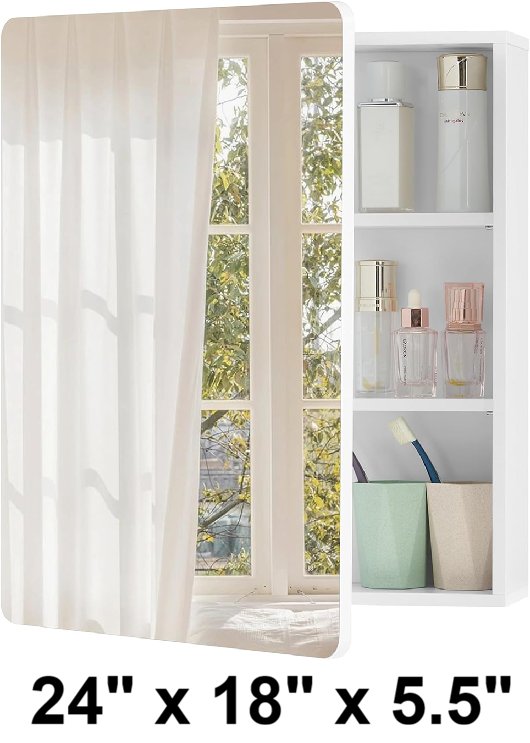 TEENFON Recessed Bathroom Medicine Cabinet with Mirror and Adjustable Shelves - 24" x 18" x 5.5" - White (Model: 1)