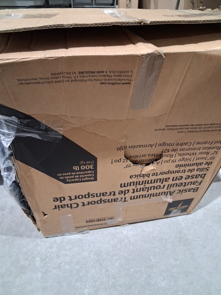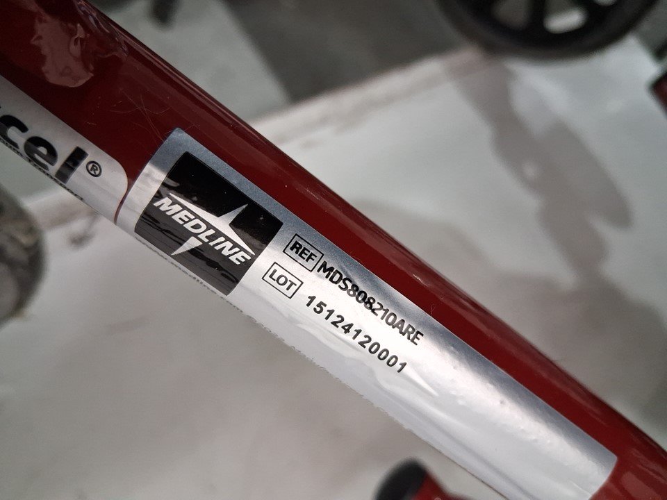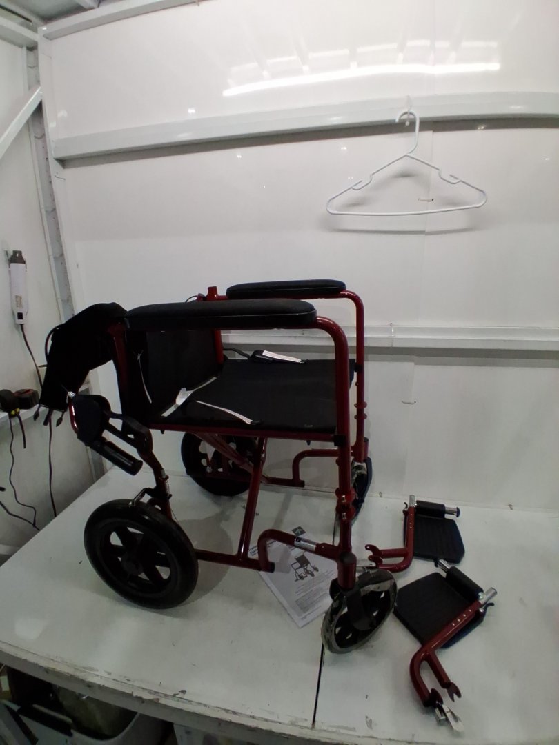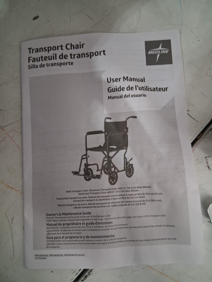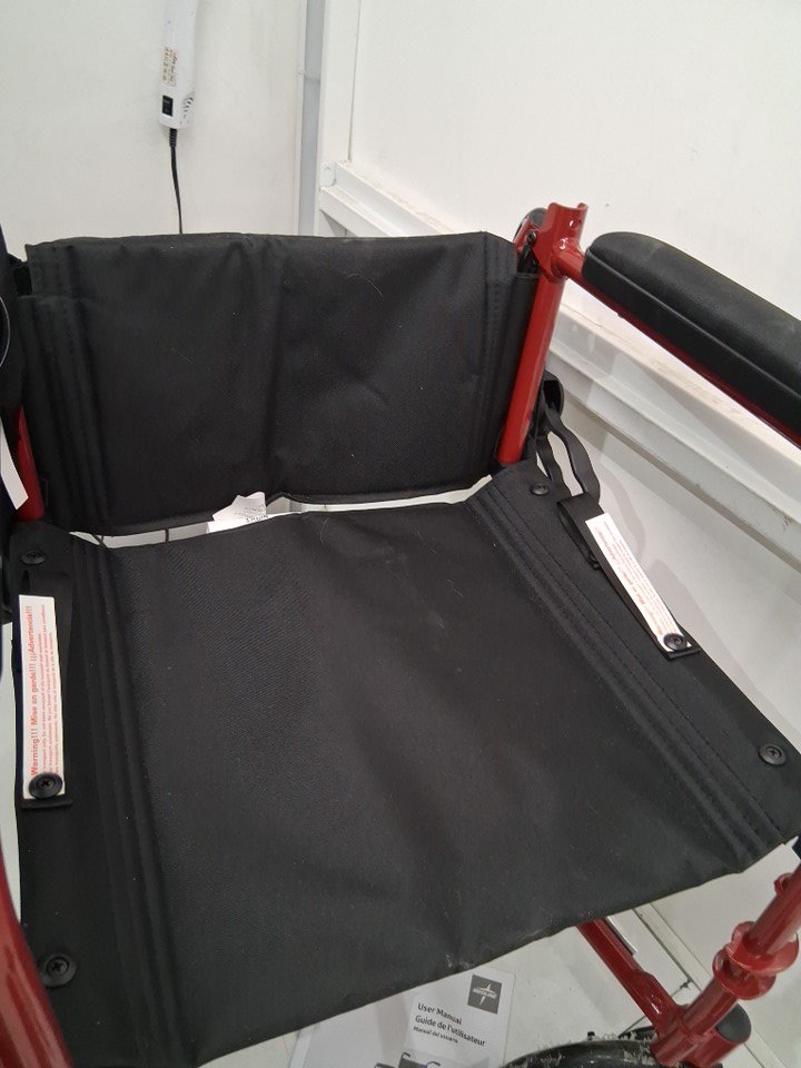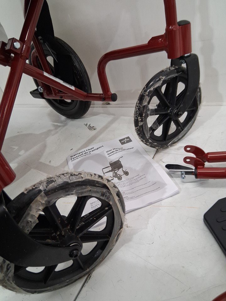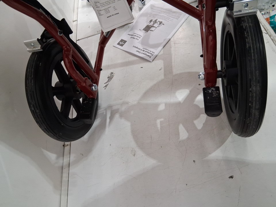 MEDLINE BASIC ALUMINUM TRANSPORT WHEELCHAIR - 19" - 12" REAR WHEELS WITH BRAKES - 300lbs capacity - RED (MODEL: MDS808210ARE)