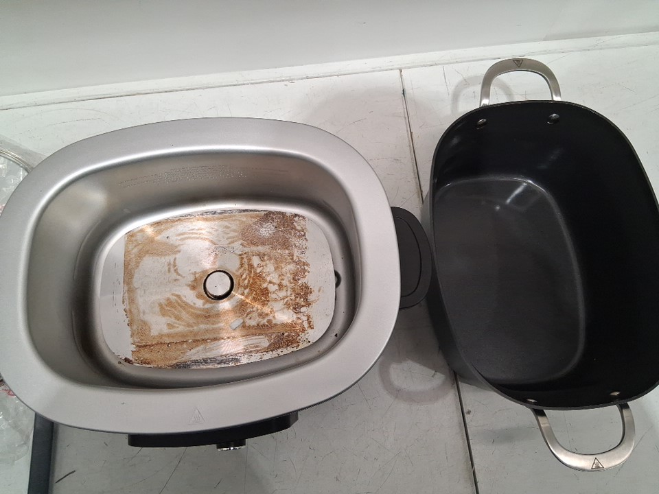 Tested for power, working. Signs of light use, some residue on heating element of appliance. See photos
