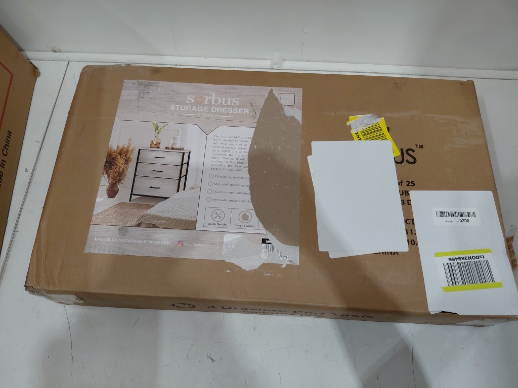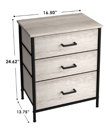 sorbus 3 fabric drawer nightstand accent end table - black/light grey (model: DRW-TB3-RUB)