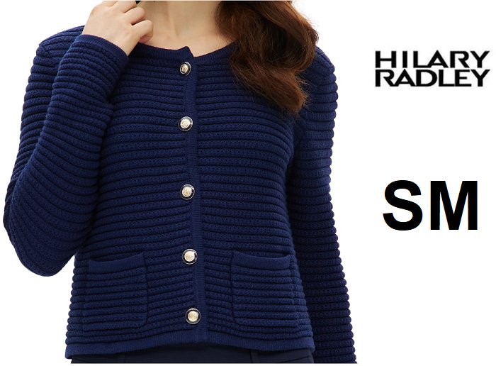 Hilary Radley CREW NECK KNITTED CARDIGAN – SMALL - NAVY - (STYLE: 1922476)