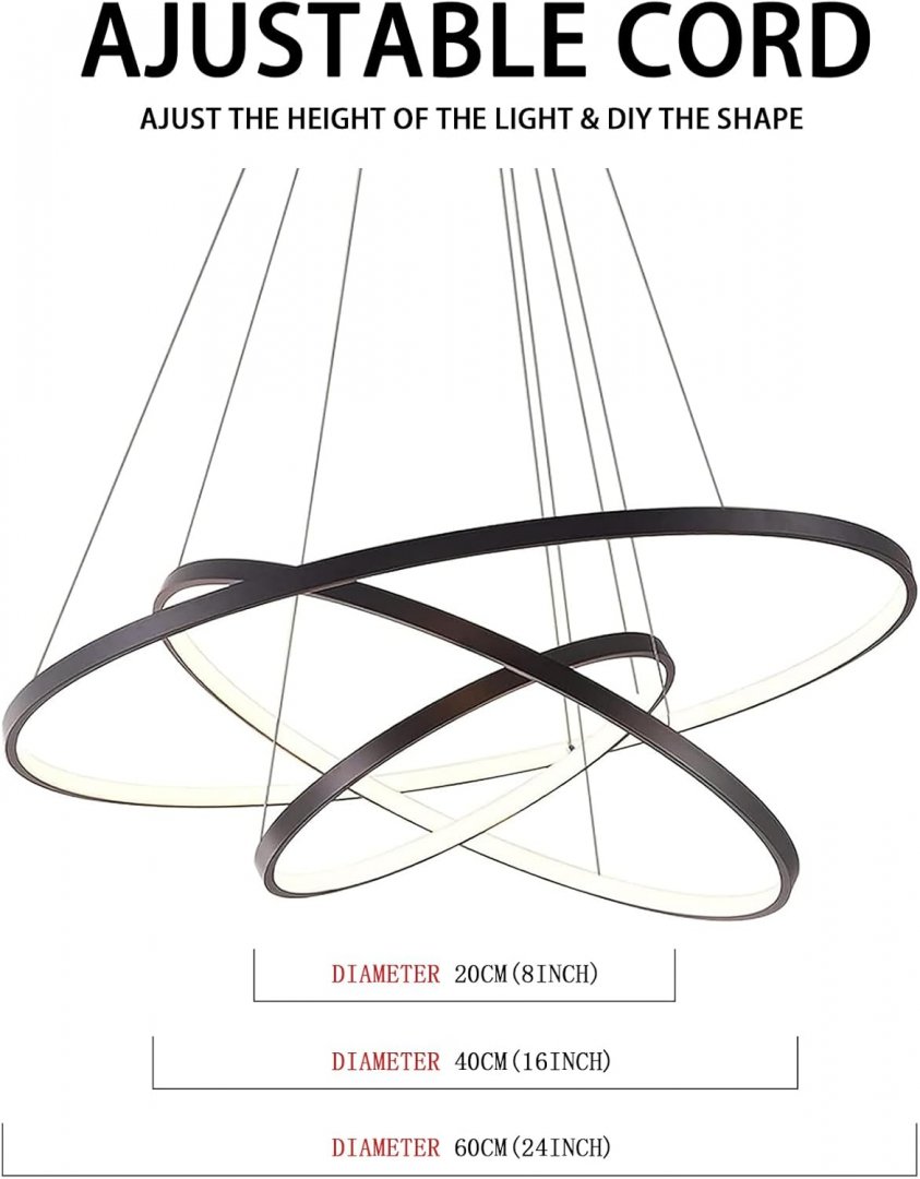 lightinthebox 3 ring modern pendant ceiling light fixture - 24" - black/warm white
