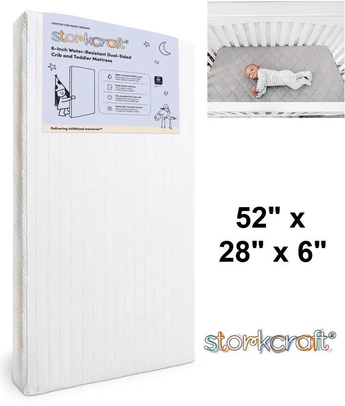 STORKCRAFT DUAL-SIDED BABY CRIB & TODDLER BED MATTRESS - 52" X 28" X 6" - (MODEL: 06710-410-OC)