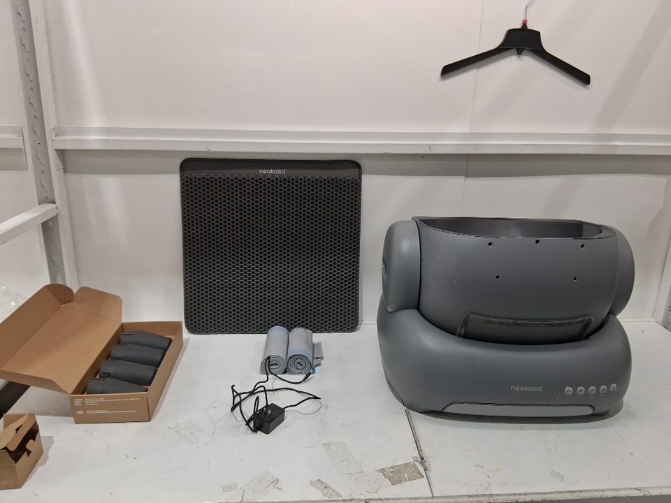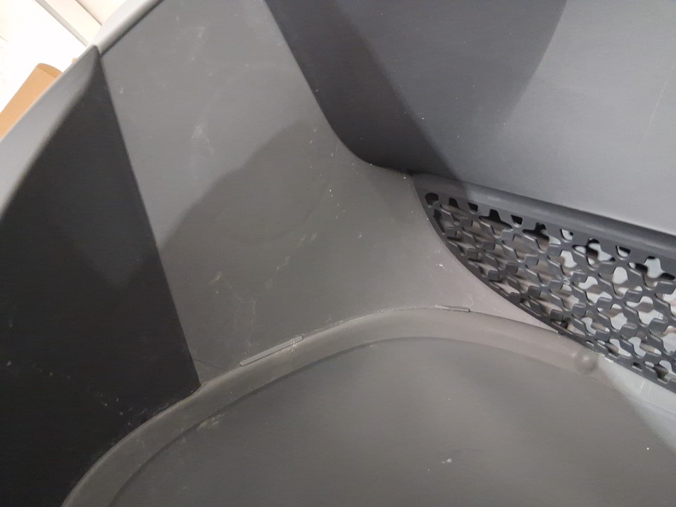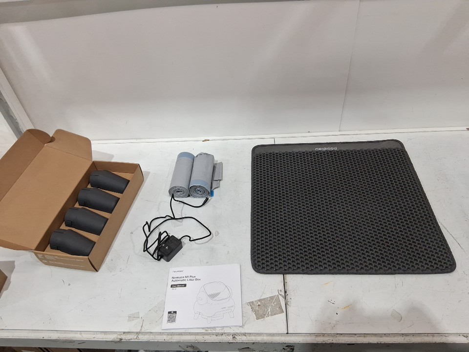 item has some litter dust residue from previous use on the outside and inside, dust and markings on legs also ( see photos ) one roll of bags have been opened