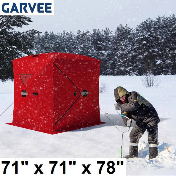 garvee 3-4 person ice fishing tent - 71" x 71" x 78" - red (model: pou_0ai4wnj7)