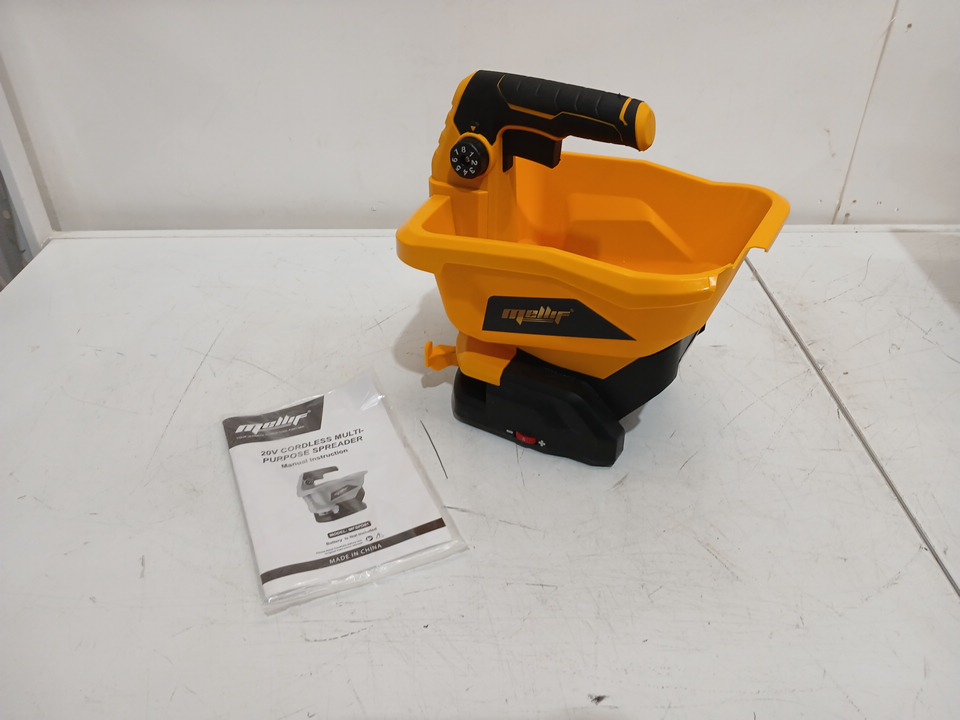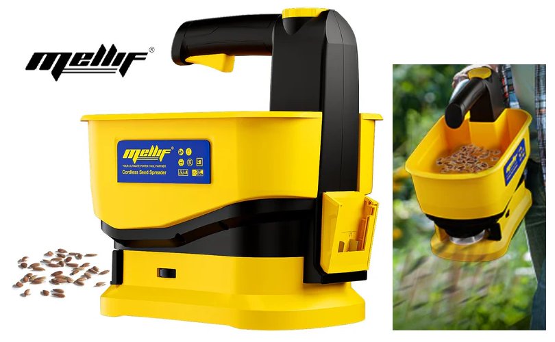 MELLIF CORDLESS HANDHELD SEED SPREADER FOR DEWALT 20V/18V MAX BATTERY - yellow (model: SS-DCB20)