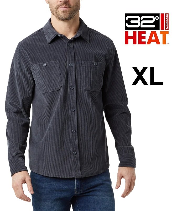 Men's 32 Degrees heat Corduroy Long Sleeve Overshirt-extra large- blue (style :1927750)
