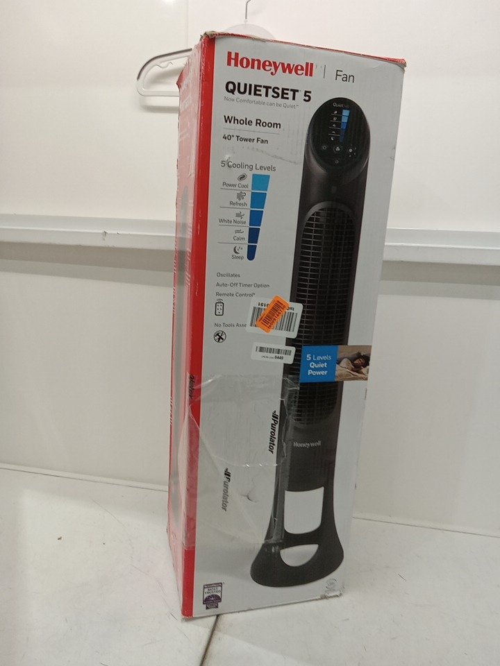 Honeywell quietset whole room tower fan with 5 Speeds, remote control & auto shut-off - 40" - 120V - black (model: hyf260bcv1)