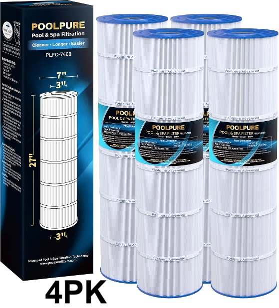 4pk POOLPURE Filter Replaces CL 460, CV460, PJAN115, Ultral-A9, Unicel C-7468, Filbur FC-0810, Excel Filters XLS-705, FC-6410, Aladdin 21501, Baleen AK-60432 - 4 X 115 sq.ft (Model: pol-plfc-7468)