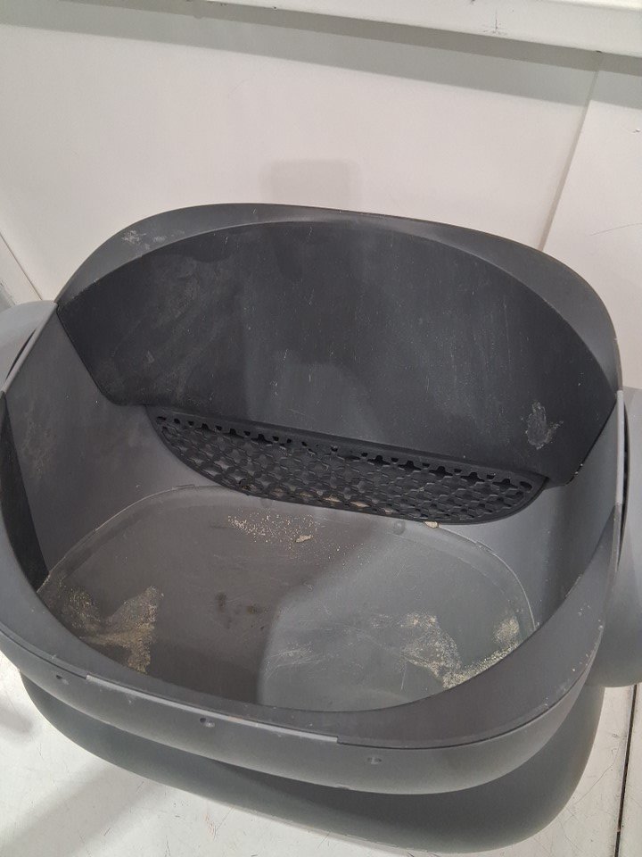 item has residue left in litter container from use. some litter can be seen, item will need to be cleaned before use.