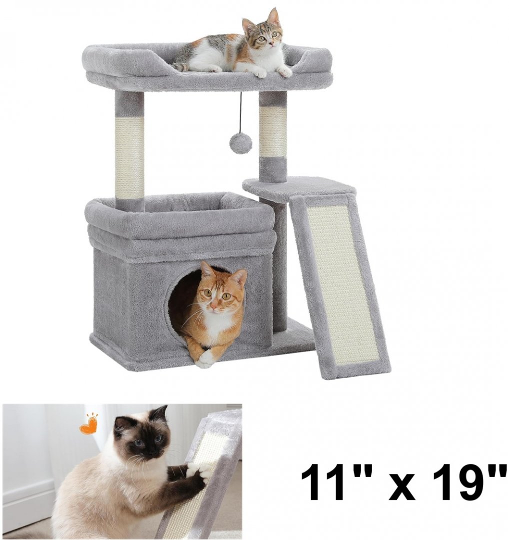 PAWZ Road Sisal Scratching Ramp Top Perch Cat Tree - 11" x 19" - grey (model: AMT0326GY)