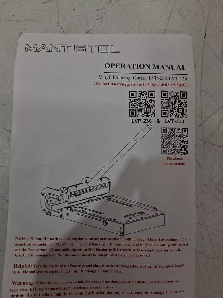 MANTISTOL PRO VINYL FLOORING CUTTER TOOL - 13" - BLACK/SILVER (MODEL: LVP-330)