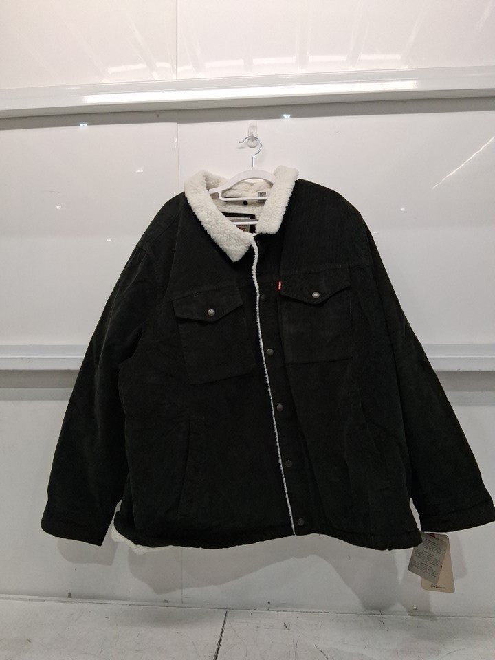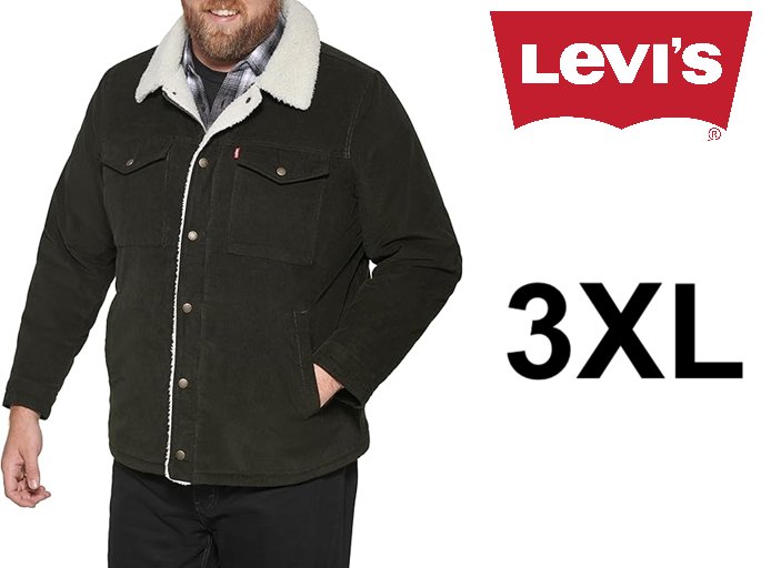 MEN'S LEVI'S CORDUROY SHERPA-LINED TRUCKER JACKET - 3XL- OLIVE (STYLE: LM8XC530)