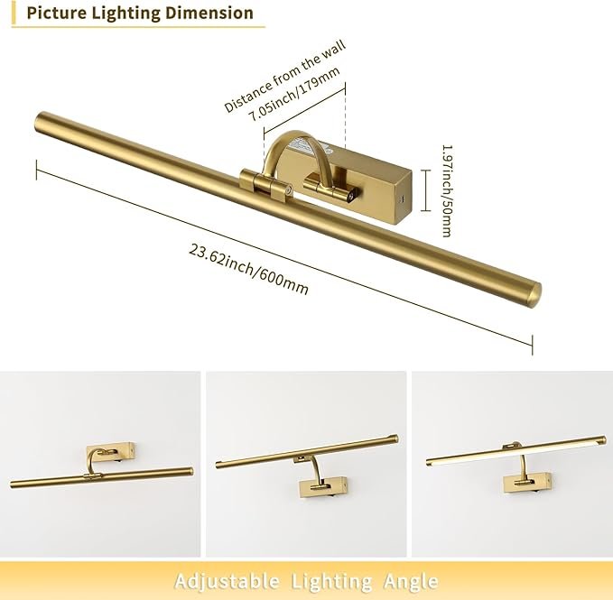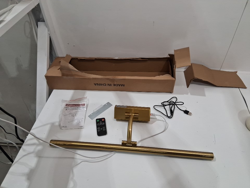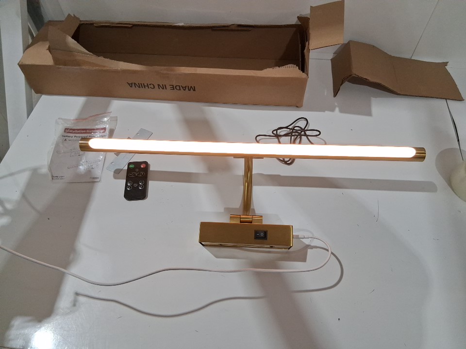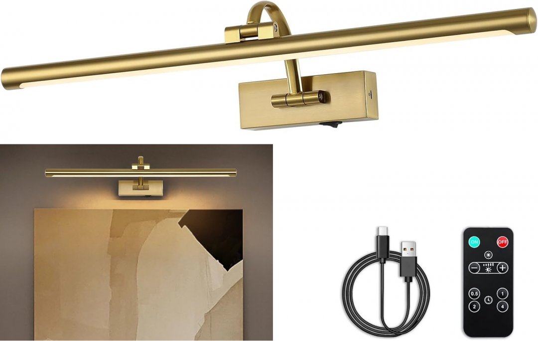 DESOOP BATTERY POWERED RECHARGABLE DIMMABLE WIRELESS WALL MOUNTED GALLERY LIGHTING FIXTURE WITH REMOTE CONTROL - 24" - 5W - brass (MODEL: 7115-600)