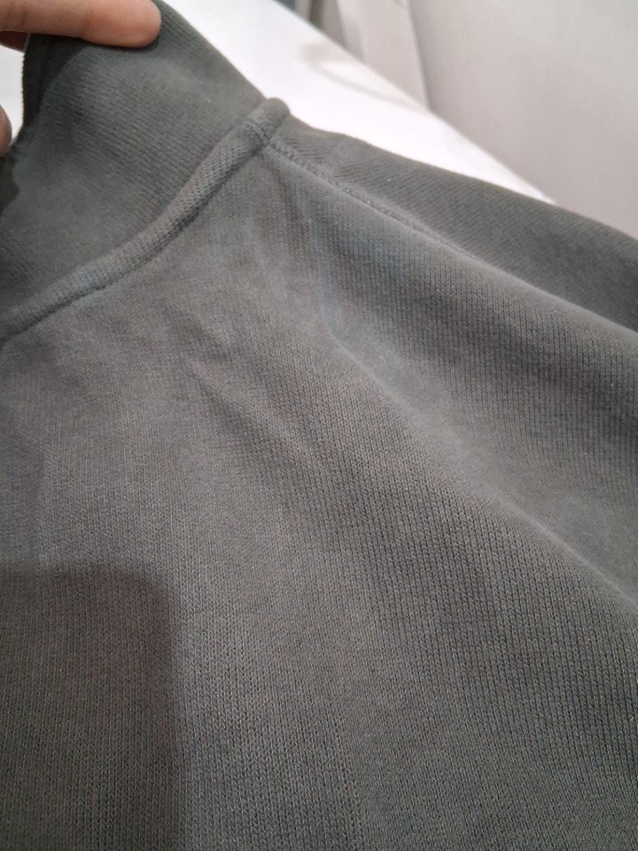 Item seems to be lightly washed out and has minor discoloration around shoulder, see photo for reference.
