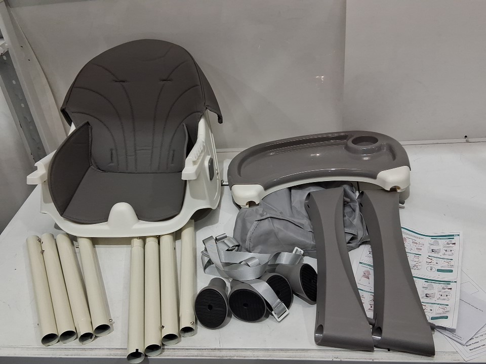 6-in-1 convertible adjustable baby high chair with 5-point harness - 110lb max load - Grey/white (model: etcy-01)