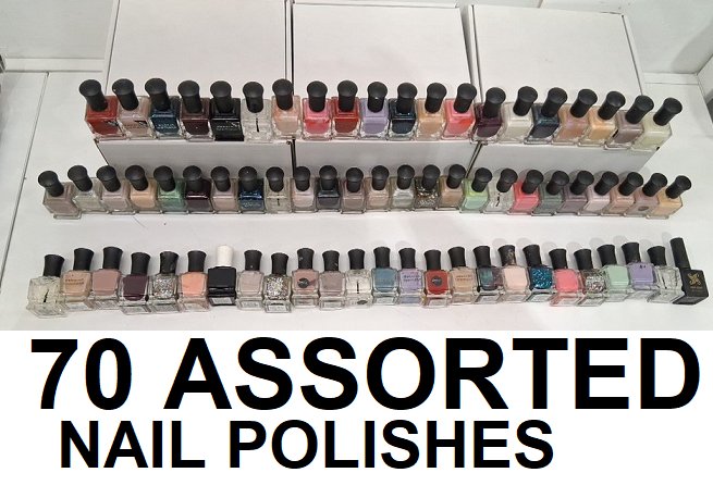 70 assorted nail polishes - assorted brands/types/sizes