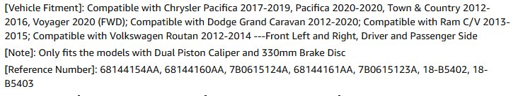 A-PREMIUM front Disc Brake Caliper Assembly with Bracket - for various Chrysler, Dodge and Volkswagen Models (model: h092430183)