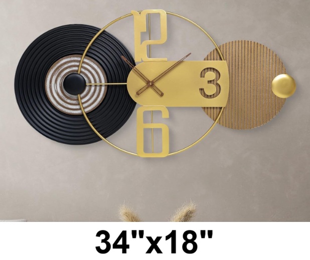 Silent Non-Ticking Abstract Decorative Clock for Living Room - 34"x 18" - gold/ black (model: GZ25010)