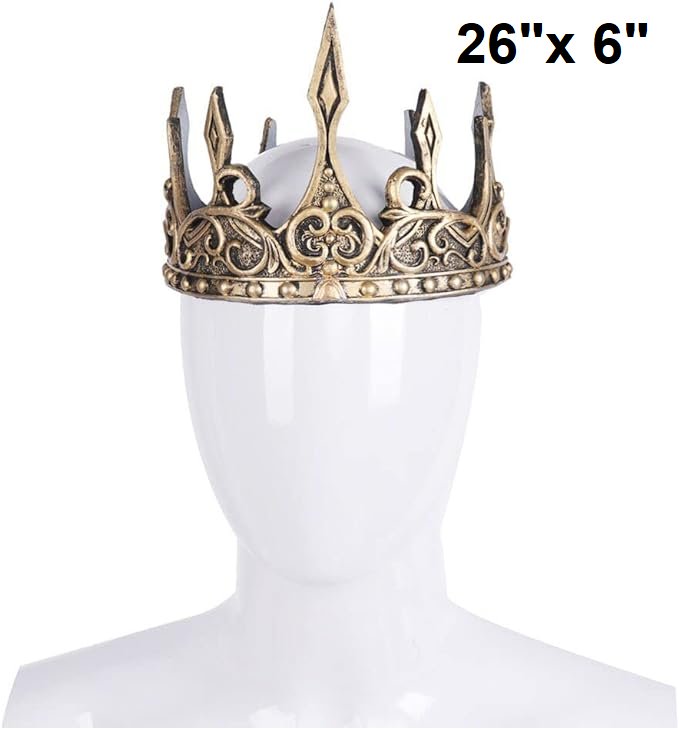 Unbranded Adult Costume Royal King Crown with Velcro Straps - 26"x 6" - Rustic Gold