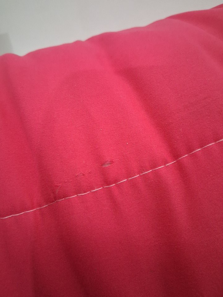 item has some minor fuzz hair and particles from previous use , also has a small tear please refer to pictures