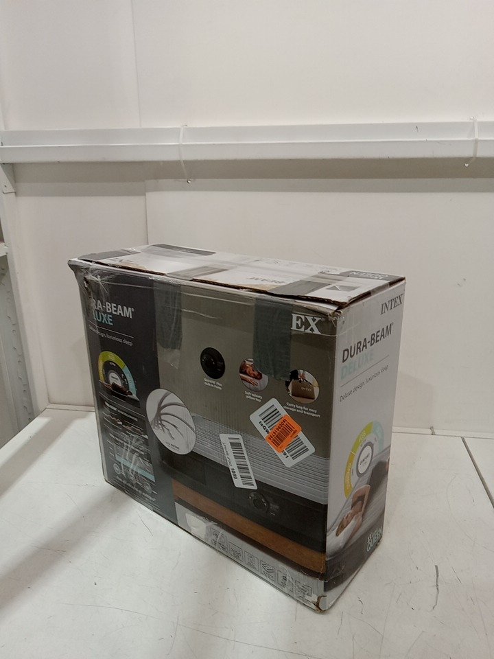 Intex Dura-Beam Series Deluxe Comfort Plush Mid Rise Airbed with Internal Electric Pump and Carrying Bag - QUEEN - 13" Height - Grey/White (Model: 67769ED)